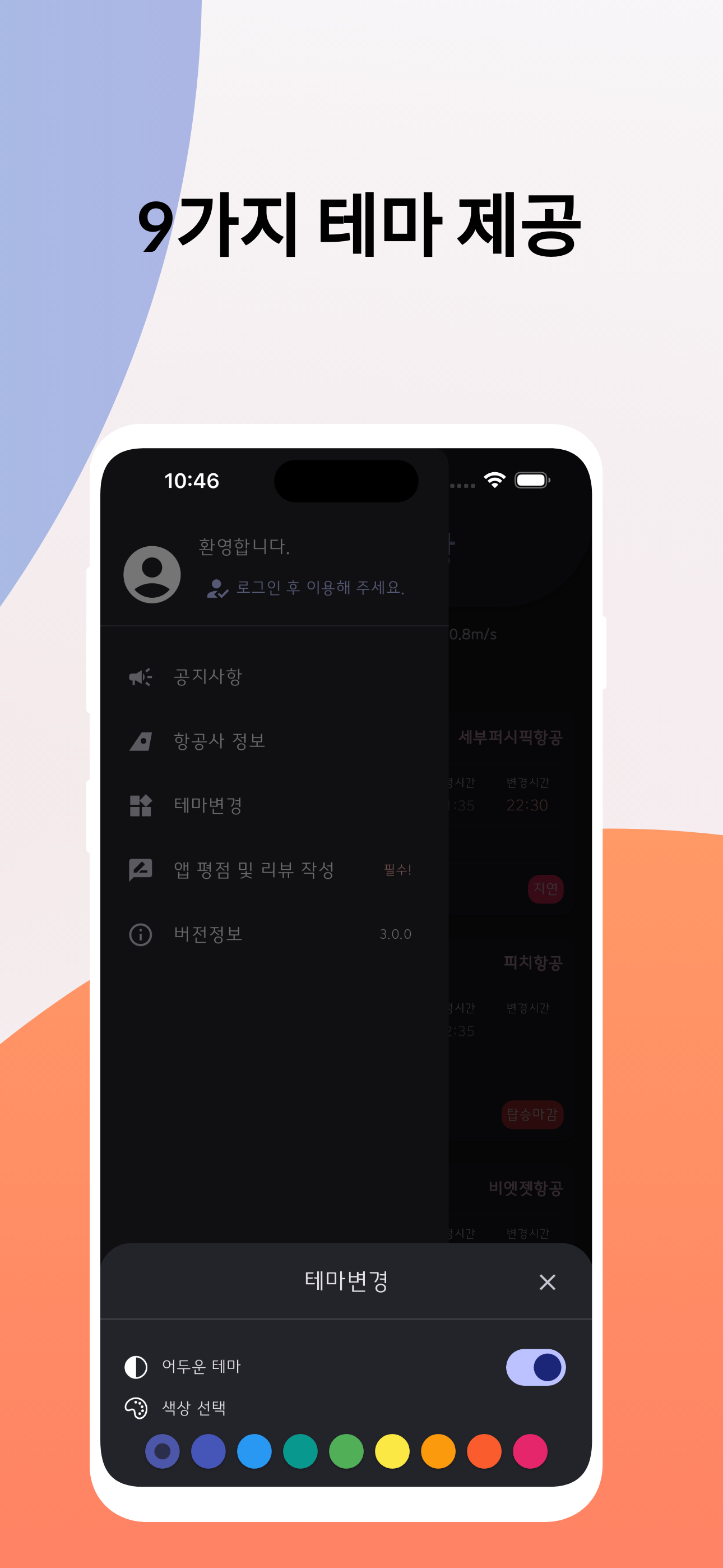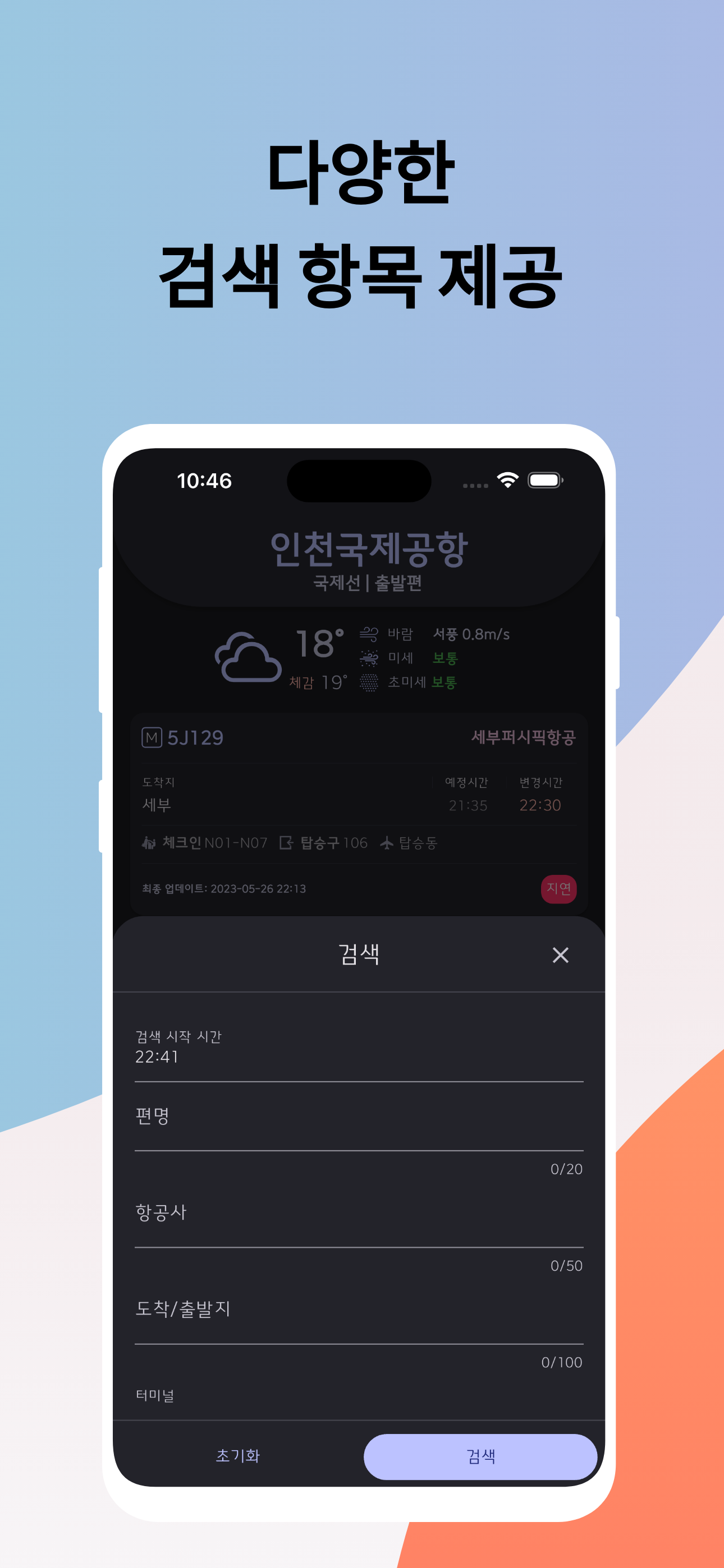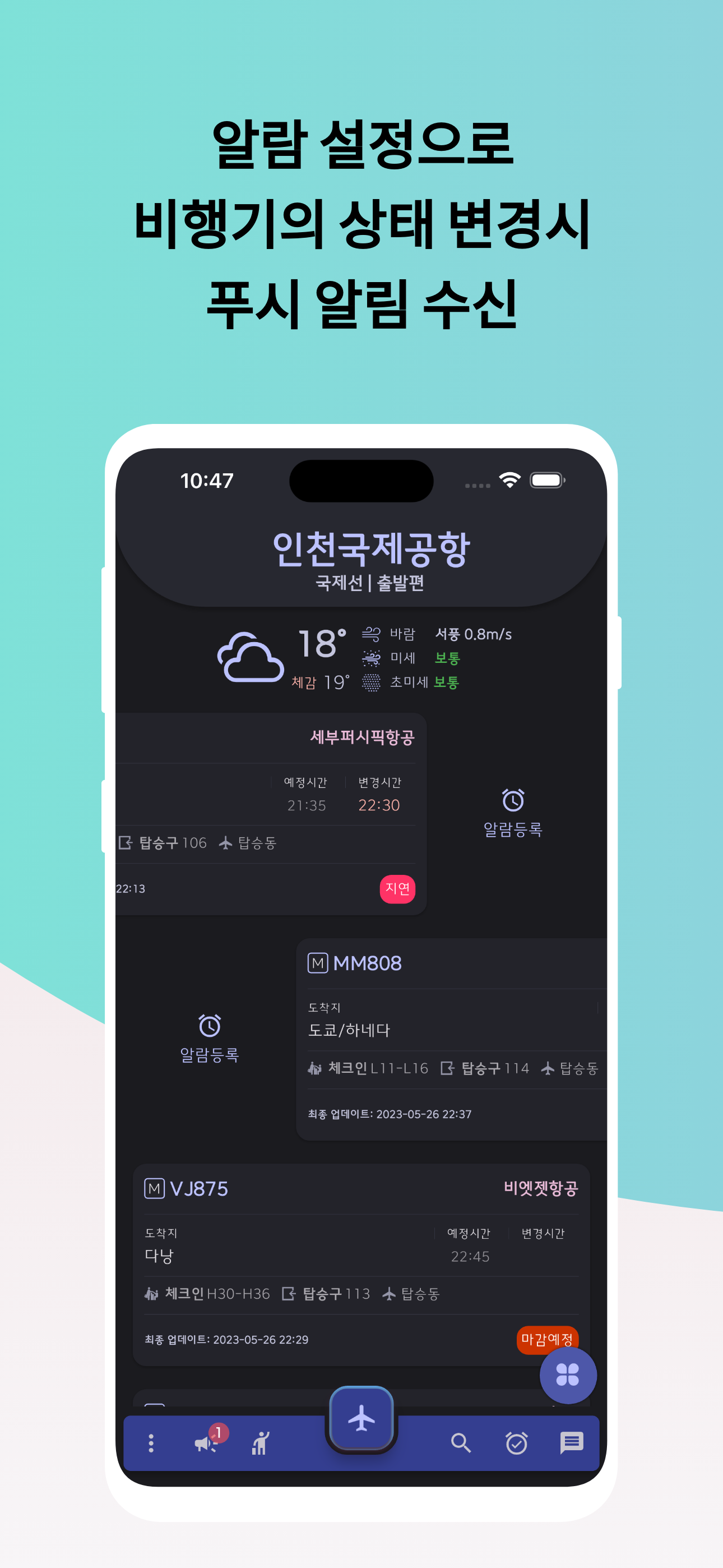 1. 모든 국내 공항 항공편에 대한 출발 / 도착 정보를 조회하실 수 있습니다. 2. 알람을 등록 하시면 모든 스케줄 변경사항에 대해 실시간으로 알림 서비스를 받으실 수 있습니다. 3. 비행기의